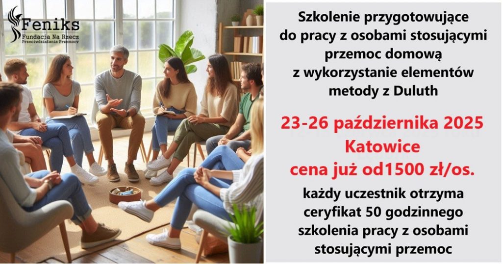 Dla instytucji i wszystkich osób chcących nabyć uprawnienia do pracy z osobami stosującymi przemoc w rodzinie z terenu całej Polski organizujemy Kurs Pracy Ze Sprawcami Przemocy z el. Metody z Duluth. Uwzględniając zmiany w ustawie o przeciwdziałaniu przemocy domowej (art 9b ust 2 pkt 9) niezbędne będzie zapewnienie odpowiedniej liczby specjalistów do prowadzenia programów korekcyjno-edukacyjnych dla osób stosujących przemoc w rodzinie kierowanych przez Zespół Interdyscyplinarny.